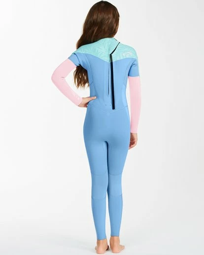 Delivering on performance, style and value, the 3/2mm Synergy Full suit for girls is made from premium Recycled Superflex neoprene, a lightweight foam made partially from recycled car tires and neoprene scraps. Cut with colorblocked panels for a custom look, the girl’s wetsuit is built with comfortable and durable stitching and a full length back zip for easy on and off.