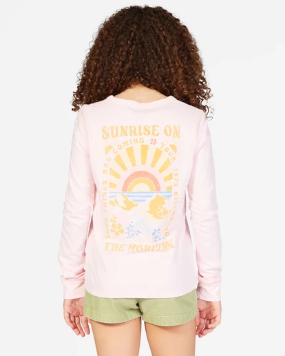 An easy-going staple for sunsets and surf checksβ the future looks bright in the Girls’ Good Things Are Coming long sleeve t-shirt. Made with cotton jersey, it features a large chest graphic, a regular fit to keep you all-day comfy, and a piece-dyed wash to create a rich color.
