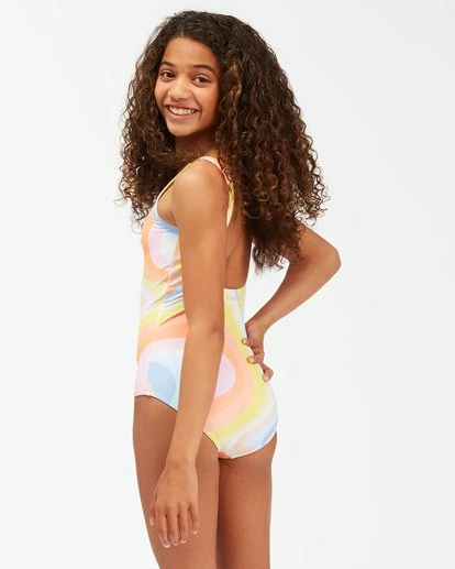 Take the road less traveled, but make it groovy. The Girls’ Groovy Road One Piece Swim is sunbaked in psychedelia with a bold print on recycled stretch fabric. Featuring a scoop neck and a medium-rise leg, this swimsuit for girls is on the hunt for peace, love, and swell.