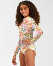 Bloom brighter than the rest of the lineup with the Girls’ Mini Mystic Long Sleeve Rashguard bikini set. Featuring floral printed sleeves and a solid core, this mock neck rashguard top is made with lightweight and stretchy recycled fabric that offers enhanced sun protection so you can ride for longer.