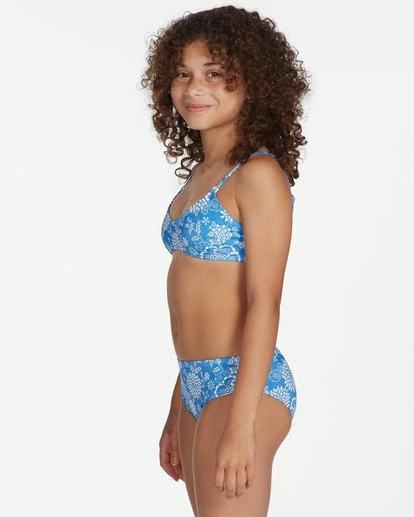 With a fully reversible print, the Girls’ Ready For Fun Trilet bikini set gives you two looksβ and twice the fun. Made with stretchy recycled poly fabric, the set includes a medium-coverage bottom paired with a V-neck, pullover top. Grab it and get out there. Good times are waiting.