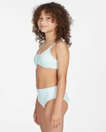 Meet your new crushโ The Girls’ Summer Love Trilet bikini set pairs tidal tie-dye with a dreamy-soft feel. Made with stretchy recycled poly, the set includes a high-waisted bottom and a pullover top with sweet shoulder ties and ruching at the front.