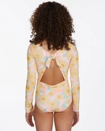 Wildflowers built for the wavesβ the Girls’ Sweet Sunset long sleeve swimsuit features a bright, floral print, a classic fit, and a beautiful open back with a hanky tie. It’s lightweight, comfortable, and the stretchy recycled fabric is built with enhanced sun protection so you can ride for longer.