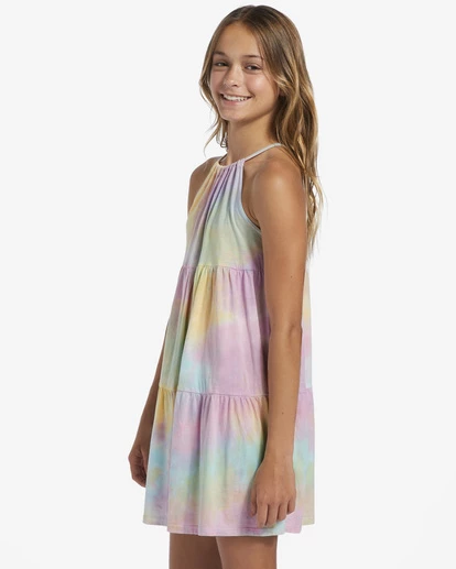 With a colorful tie-dye wash and a playful silhouette, the Girls’ To The Beach knit dress is sure to be your new summer sidekick. The A-line dress features a tiered skirt, a halter neckline, and super-soft cotton jersey that keeps it feeling lightweight and flowy.