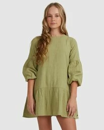 Hot Sale 😀 Billabong 👧 Girls’ Mini Wishes Long Sleeve 👗 Dress AVOCADO ✔️